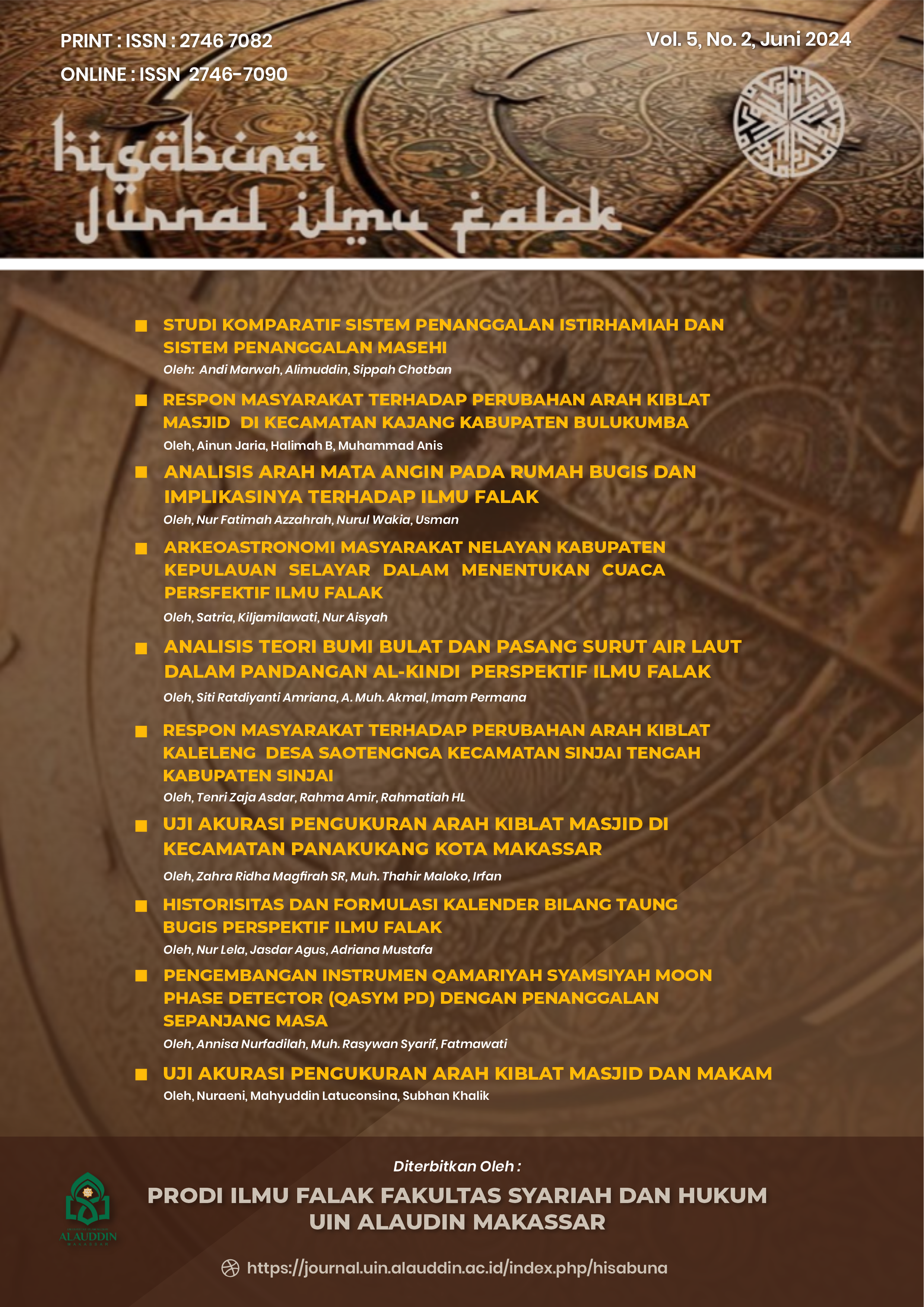 This article discusses the historicity and formulation of the said taung Bugis calendar from the perspective of falak. The main problem in this study is how is the historicity and formulation of the said taung Bugis calendar from the perspective of falak, which is described into several problem formulations: 1) What is the history of the Said Taung Bugis calendar?, 2) How is the formulation of the Said Taung Bugis calendar from the perspective of science?. The objectives of this study are: 1) To find out the history of the Bilang Taung Bugis calendar, 2) To find out the formulation of the Said Taung Bugis calendar from the perspective of science. The Bilang Taung Bugis calendar as a dating system of the Bugis people comes from an ancient manuscript called Lontara Katakan. This calendar has a number of days as many as 365 days that use the same solar circulation system as the Gregorian calendar. The beginning of the year of this calendar begins on May 16 in the Gregorian calendar or 1 Sarawanai in the Bugis calendar. The calculation made in making the conversion is based on the conversion analysis of the Bugis-Makassar Calendar and the Gregorian Calendar by Muh. Fadil Student of UIN Walisongo Semarang. The calculation is taken from the beginning of each month in the Bugis calendar, starting from the month of Sarawanai to the month of Jettai. The Bilang Taung Bugis calendar besides being used by the Bugis tribe is also used by the Makassar tribe. The names in this calendar include: Sarawanai, Padawaranai, Sujiari, Pacingkai, Posiyai, Mangasirai, Magasettiwi, Mangalompai, Nagai, Palagunai, Biasakai, and Jettai. The implementation of this calendar can be applied to convert the calendar to the Gregorian and Hijri calendars. The presence of this research is expected to make a major contribution in efforts to preserve local wisdom owned by the Bugis community.